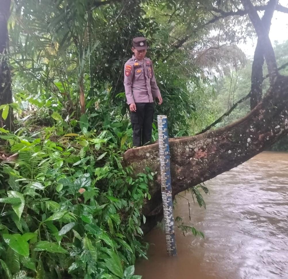 Polres Lamandau – Polsek Delang, Piket Polsek Delang melakukan kegiatan rutin pengecekan debit air DAS Delang di TMA Kelurahan Kudangan RT.02 Kecamatan Delang, Senin (25/8/25) pagi