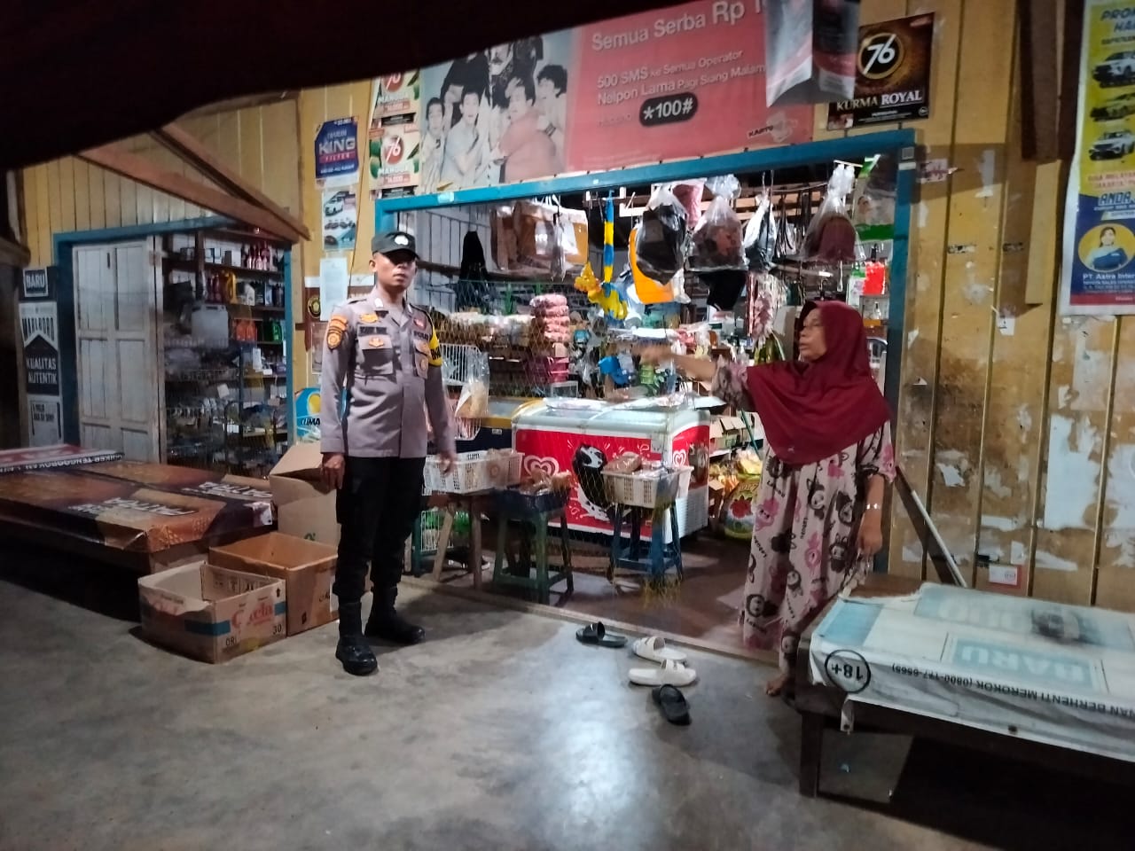 Polres lamandau – Personil piket Polsek Delang Polres Delang melaksanakan Patroli dan sambang kepada pedagang wilayah Polsek Delang, Minggu (24/8/25) Malam.