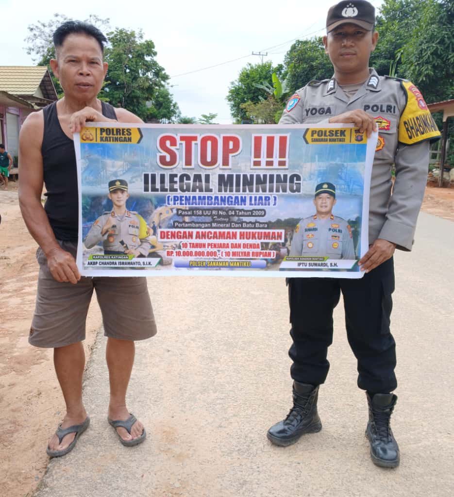 Kapolres Katingan AKBP CHANDRA ISMAWANTO,S.I.K. melalui Kapolsek Sanaman Mantikei, Iptu Suwardi, S.H. menjelaskan kegiatan Bhabinkamtibmas jajaran Polres Katingan dengan cara sosialisasi kepada masyarakat agar mengerti dan memahami tentang larangan Ilegal Mining serta mengerti bahwa dampak dan akibat yang di timbulkan akibat Ilegal mining tersebut.