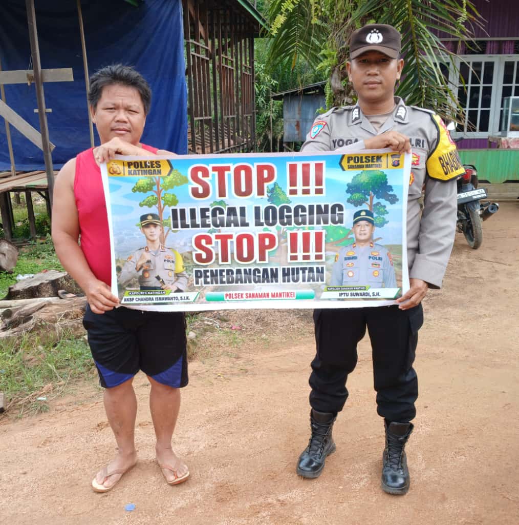 Kapolres Katingan AKBP CHANDRA ISMAWANTO , S.I.K.,melalui Kapolsek Sanaman Mantikei IPTU SUWARDI , S.H menjelaskan kegiatan Bhabinkamtibmas jajaran Polres Katingan dengan cara sosialisasi kepada masyarakat agar mengerti dan memahami tentang larangan dan sangsi bagi pelaku pekerja Ileggal Loging serta mengerti bahwa dampak dan akibat yang di timbulkan akibat Ileggal Loging tersebut.