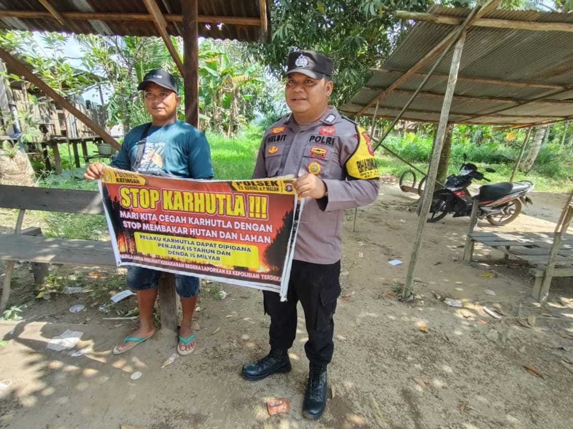 Polres Katingan – Salah satu cara Polsek Tws. Garing dan Pulau Malan, Polres Katingan, Polda Kalimantan Tengah dalam menangani Dampak KARHUTLA, Bhabinkamtibmas Ds. Buntut Bali Polsek Tws. Garing dan Pulau Malan melaksanakan Sosialisasi STOP!!! KEJAHATAN TERHADAP LINGKUNGAN “DILARANG MEMBAKAR HUTAN DAN LAHAN DI WILKUM POLSEK TWS GARING DAN P. MALAN kepada masyarakat Desa Buntut Bali, Kec. Pulau Malan Kab.Katingan kegiatan, Sabtu (08/11/2025) pagi.