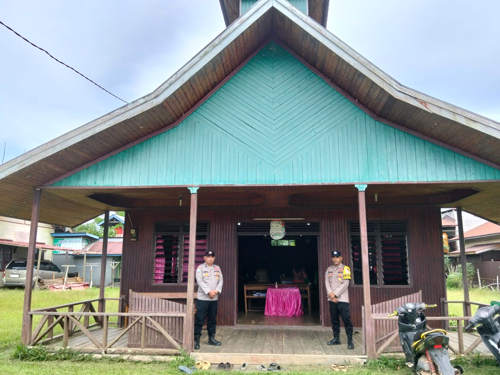 KATINGAN – Polsek Marikit – Jajaran Polres Katingan, Polda Kalimantan Tengah Kehadiran Personil Polsek Marikit saat Kegiatan Ibadah Umat Nasrani diwilayah, Kec. Marikit, Kab. Katingan, Minggu (30/11/2025) Pagi