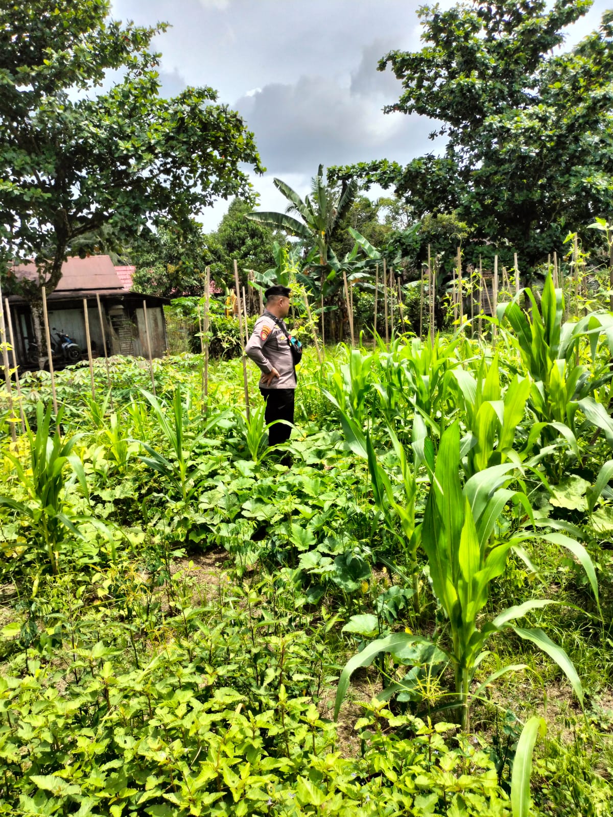 Mendukung Ketahanan Pangan, Personil Polsek sanaman mantikei Cek Lokasi Pemanfaatan Pekarangan Warga.